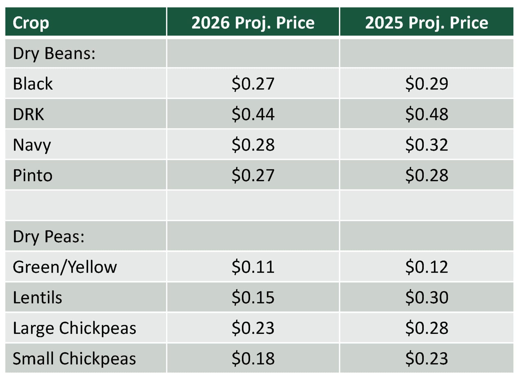 2026 Crop Insurance Dry Bean and Dry Pea Prices