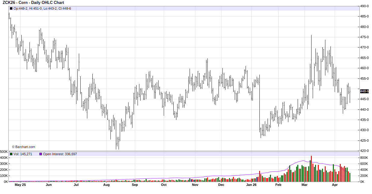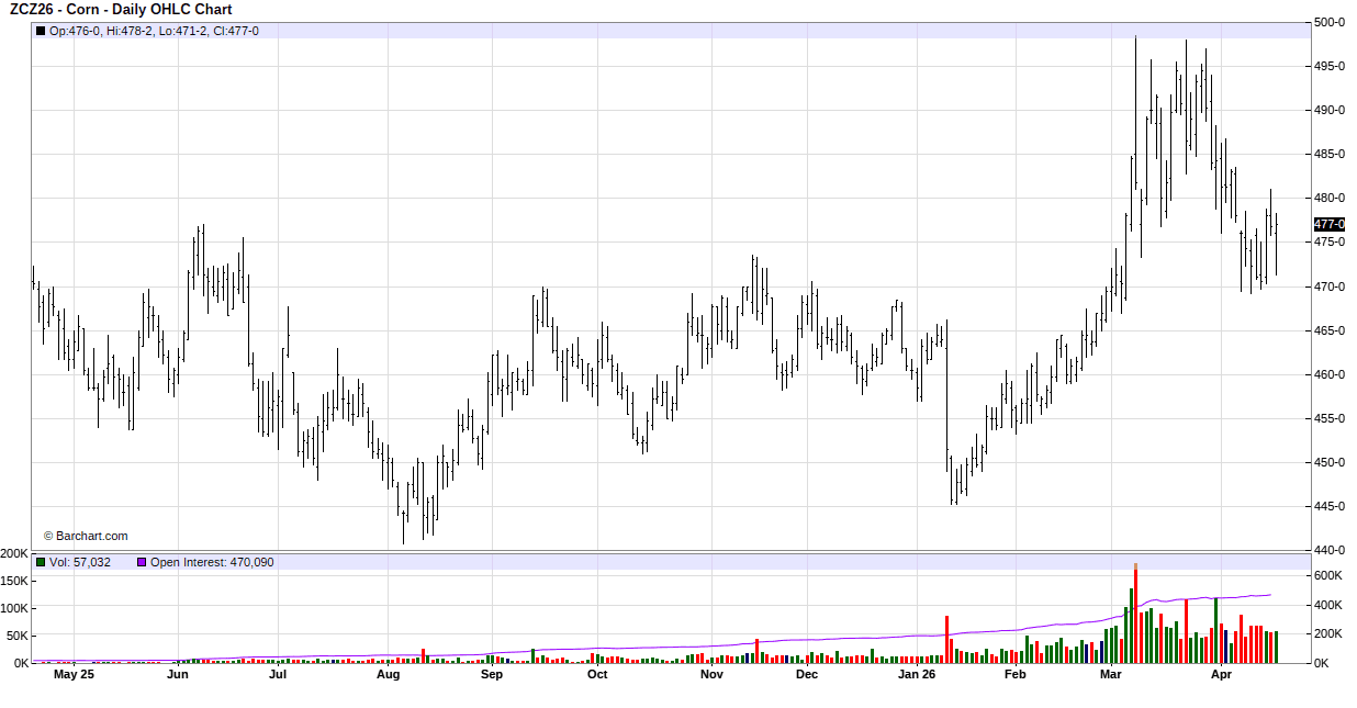 Corn opened Wednesday’s session steady but managed to extend session gains throughout the night and day session. Early support was due to reports that talks between US and Iran are advancing behind the scenes and that the war could be drawing to a close soon. Light support came from weather forecasts. The 6-to-10-day forecast is calling for above precip for the Corn Belt, which will continue to delay planting. Gains were kept in check early from news that USDA had to make a downward revision to Monday’s export inspection estimate.