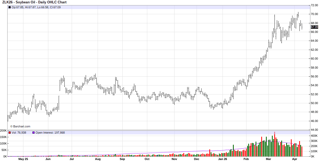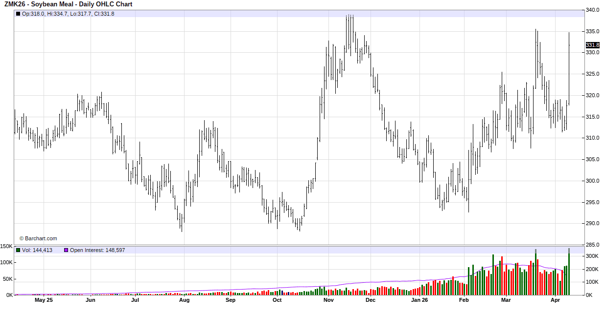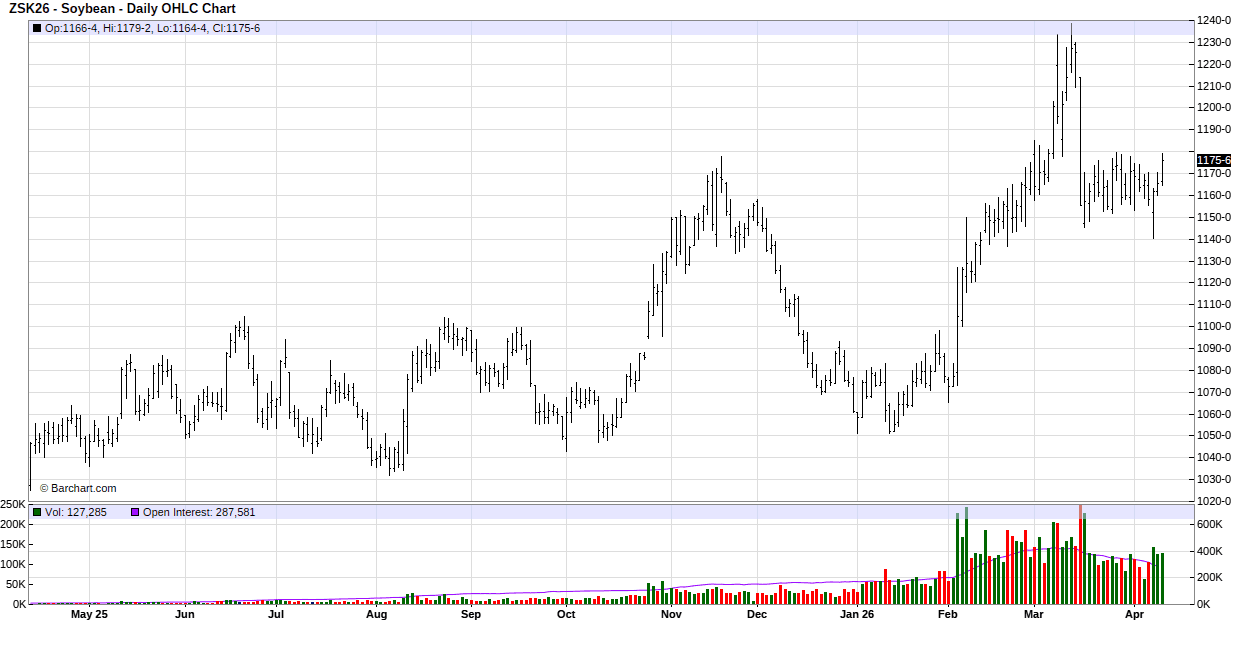 Tuesday’s session has soybeans trading back and forth on both sides of unchanged overnight and into the day session, then faded to close with losses. There wasn’t much fresh news to move the market, and traders seemed to be waiting to see what the Trump administration will do if Iran doesn’t meet Trump’s deadline to open the Strait of Hormuz. So, the market took the path of least resistance lower. Some analysts think USDA will increase crush demand in Thursday’s report, but exports will likely be left unchanged until after the Trump/Xi meeting scheduled for mid-May. Dr. Cordonnier left his estimate of Brazil’s crop unchanged at 179.0 MMT and increased Argentina by 1.0 MMT to 48.0 MMT.