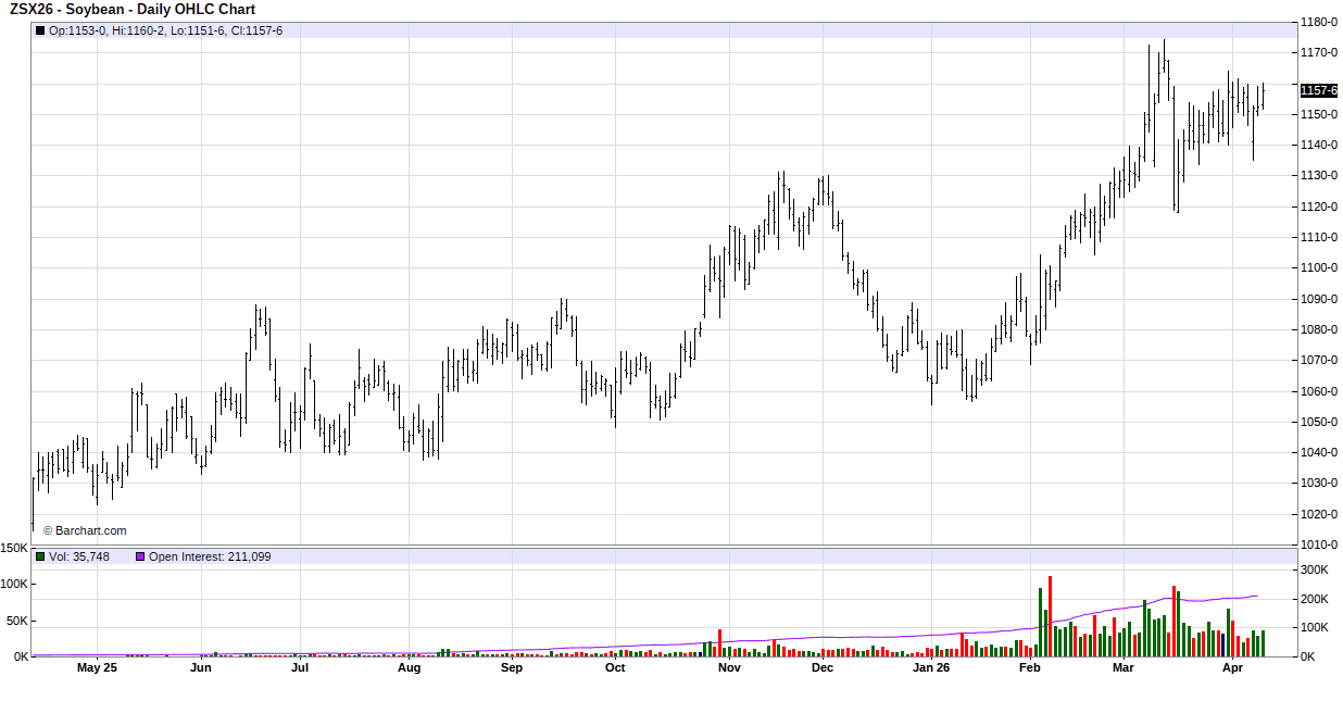 Heavy selling hit the soybean complex midweek with soybeans gapping sharply lower at the start of the overnight session on the ceasefire announcement but then quickly started trimming the losses. The market got back on the positive side late in the overnight session and was able to close with small gains. Technical buying and positioning ahead of Thursday’s USDA report helped soybeans turn higher. Gains were limited by the sharply lower soybean oil market. China is attempting to reduce the amount of soymeal their hog herd consumes and is promoting fermented feed, which has gone from 3% of industrial feed in 2022 to 8% in 2025 and is targeted to hit 15% by 2030. That would result in a 6% reduction in China’s soybean imports. In the first two months of their marketing year, Brazil exported 21.6 MMT of soybeans vs. 21.1 MMT for the same time period last year.