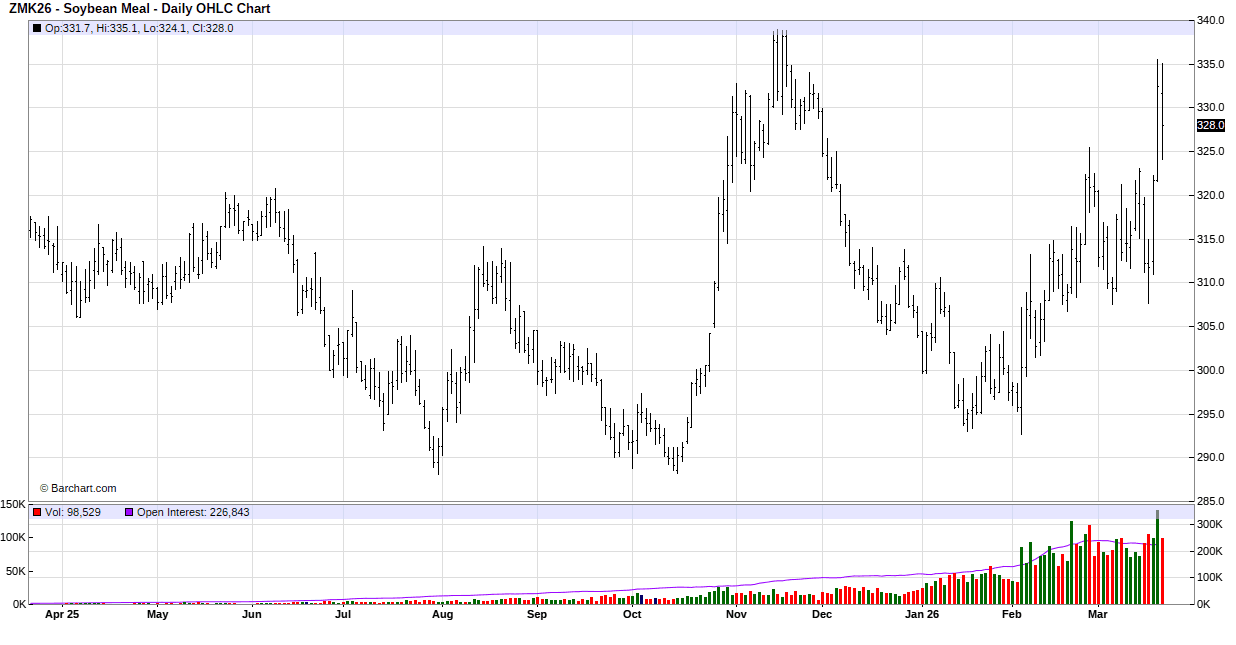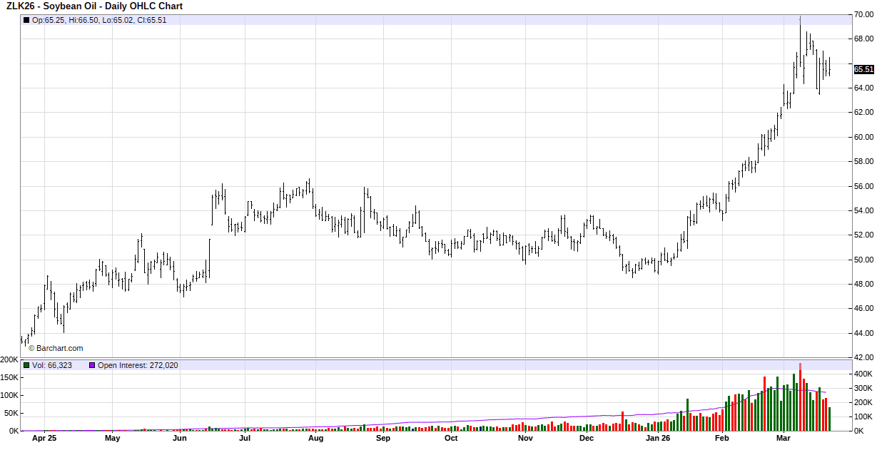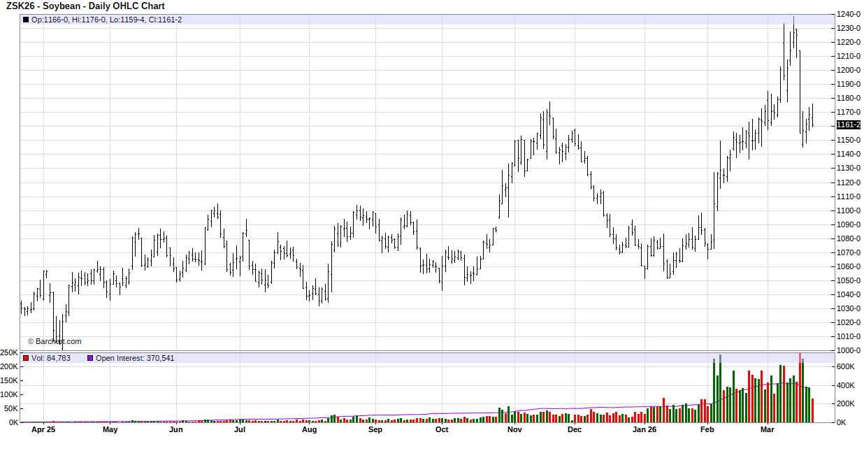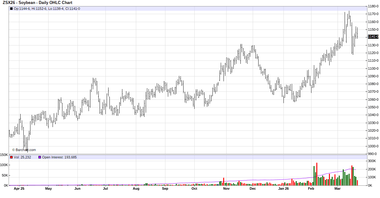 In Tuesday’s session soybeans traded back and forth on both sides of unchanged and closed with small gains in the front months and double-digit gains in the new crop contracts. Support spilled over over from the sharply higher soybean oil market. Soybean oil was higher on reports President Trump is planning a major White House event on March 27 focused on agriculture and biofuels. The assumption is EPA’s blending mandates for 2026 (and possibly 2027) will be announced at this event and will be friendly to the biofuel industry. Bargain buying after Monday’s steep losses added support. Brazil is revising rules for inspecting soybean shipments to China after Cargill paused shipments. Now inspections will be made by private companies hired by the exporter instead of using government inspectors.