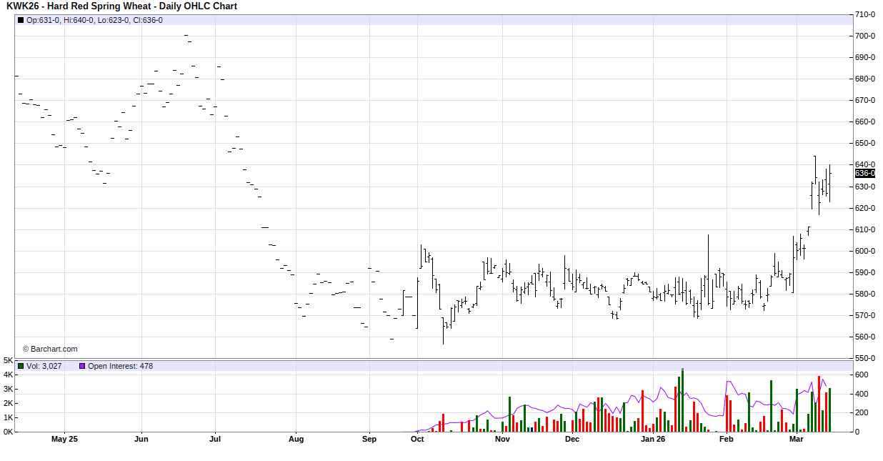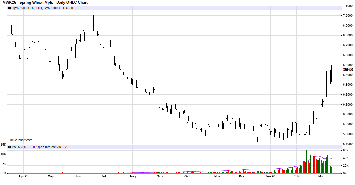 For the week, May Mpls MIAX was at $6.455 up 2.5 cents, May Chicago was at $6.1375 down 3.0 cents, May KC was at $6.30 up 6.5 cents.